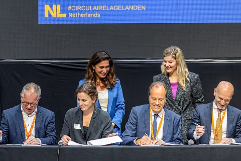 Foto: Op 19 mei 2022 is de samenwerking tussen de partners van ENZuid en Vlaanderen voor BOUW-MIJN ondertekend in aanwezigheid van Liesje Schreinemacher, Nederlands minister voor Buitenlandse Handel en Ontwikkelingssamenwerking, en Zuhal Demir, Vlaams minister voor Omgeving, Justitie, Toerisme en Energie.